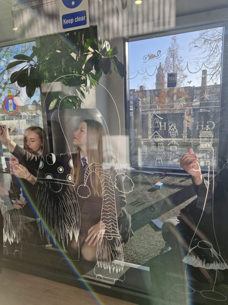 Year 10 artists from Hull Trinity House Academy, kicked off the festive season by visiting the new Glass House apartments in Hull to create a Christmas window display.