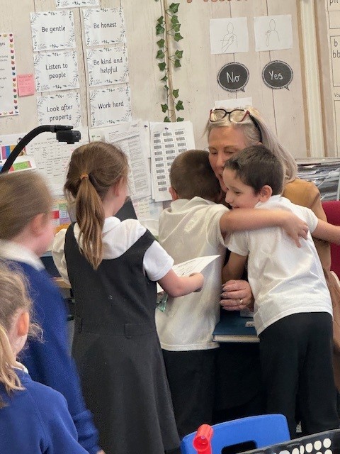 Children in Tigers class were discussing kindness and asked, as a surprise, to write about what Mrs Shaw does that is kind. On sharing these with her, councillors arrived with the award! The children were quick to give her celebratory hugs and a huge round of applause for such wonderful praise.