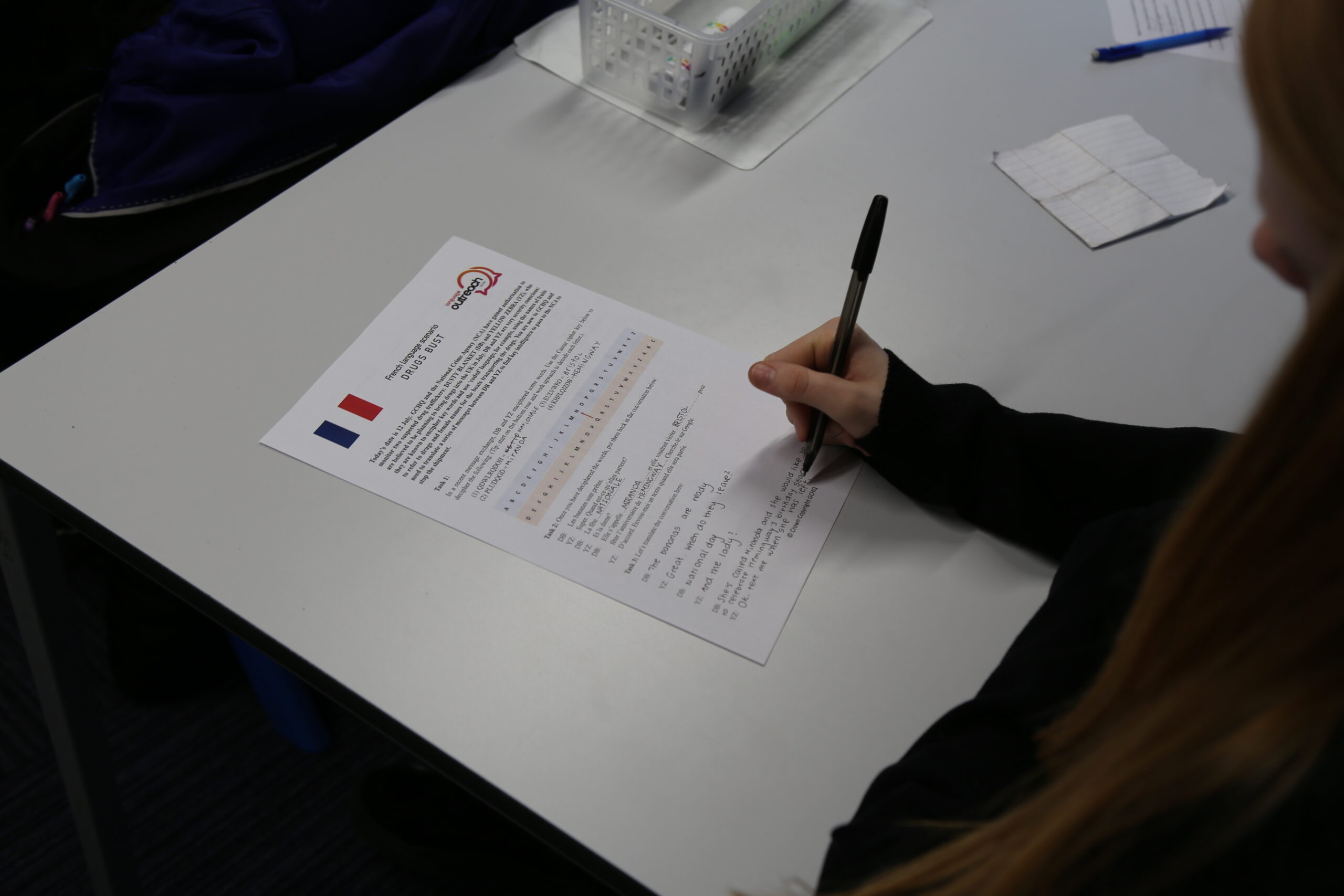 The students then took part in language scenario activities, which involved de-cyphering the French/German coded messages sent by criminals in possible national security scenarios.