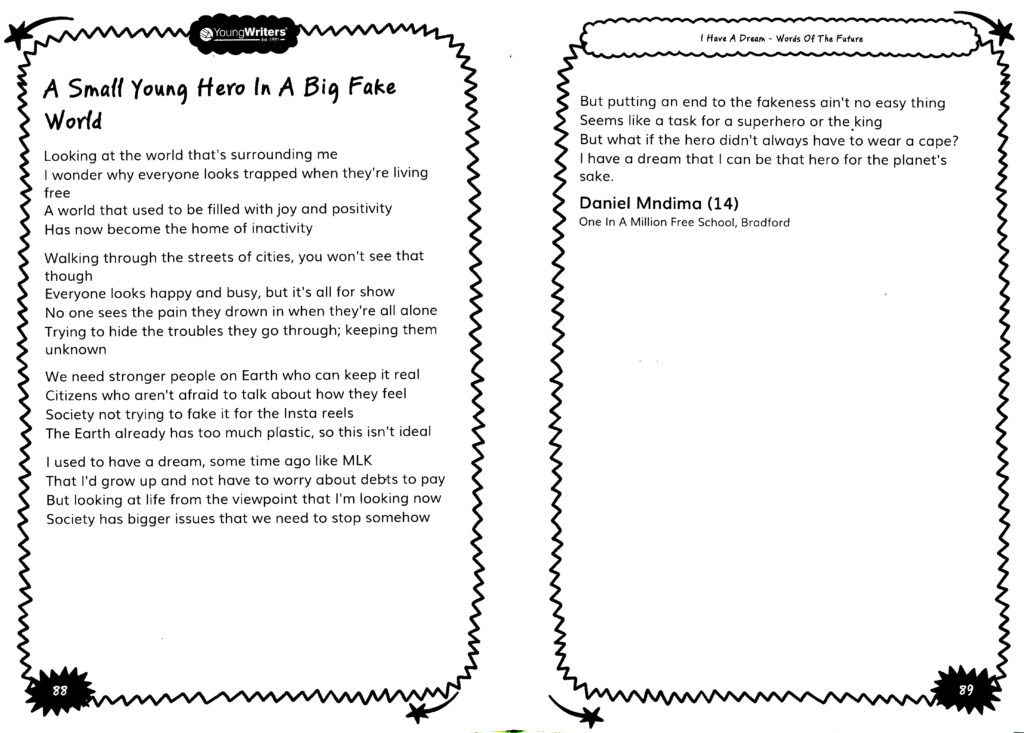 Valley Academy is delighted to announce that Daniel Mndima in Year 9, was a successful participant in the ‘Young Writers’ competition. Daniel’s entry “A Small Hero in a Big Fake World” has been published alongside other successful entrants.