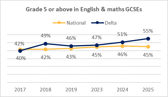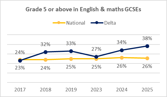 Disadvantaged Grade 5 or above in English and Maths GCSEs
